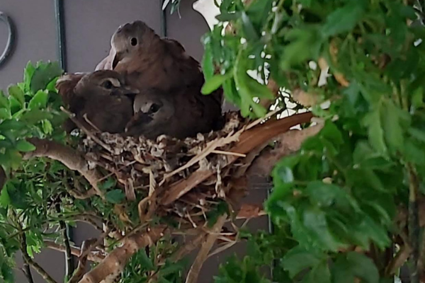 Pouco antes desse vírus danadinho começar a perturbar o mundo e as nossas cabeças, achamos um ninho de rolinhas na árvore da felicidade que está na sacada do apartamento há 22 anos. Já comentei isso por aqui.