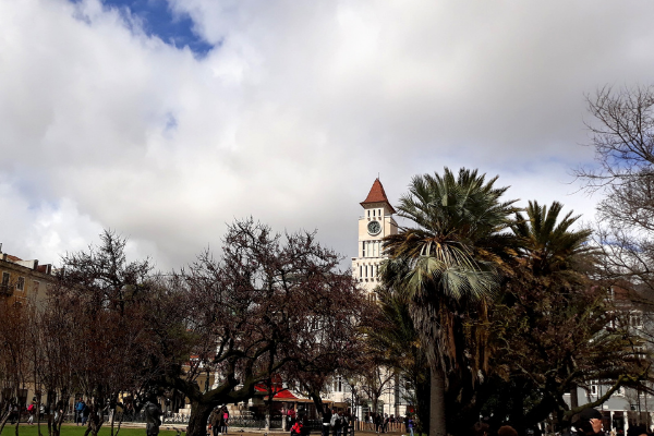 Caminhávamos observando tudo aqui e ali. Passávamos por sobrados característicos de Lisboa, lojas pequenas e muitas obras de restaurações de prédios antigos. Lá pelas tantas, quando atravessávamos a Praça Jardim Dom Luís ao lado do mercado, resolvi parar para fotografar. Um das minhas manias, principalmente, em viagens. Minha amiga seguiu na direção do café.